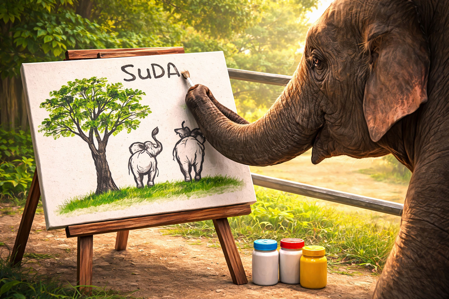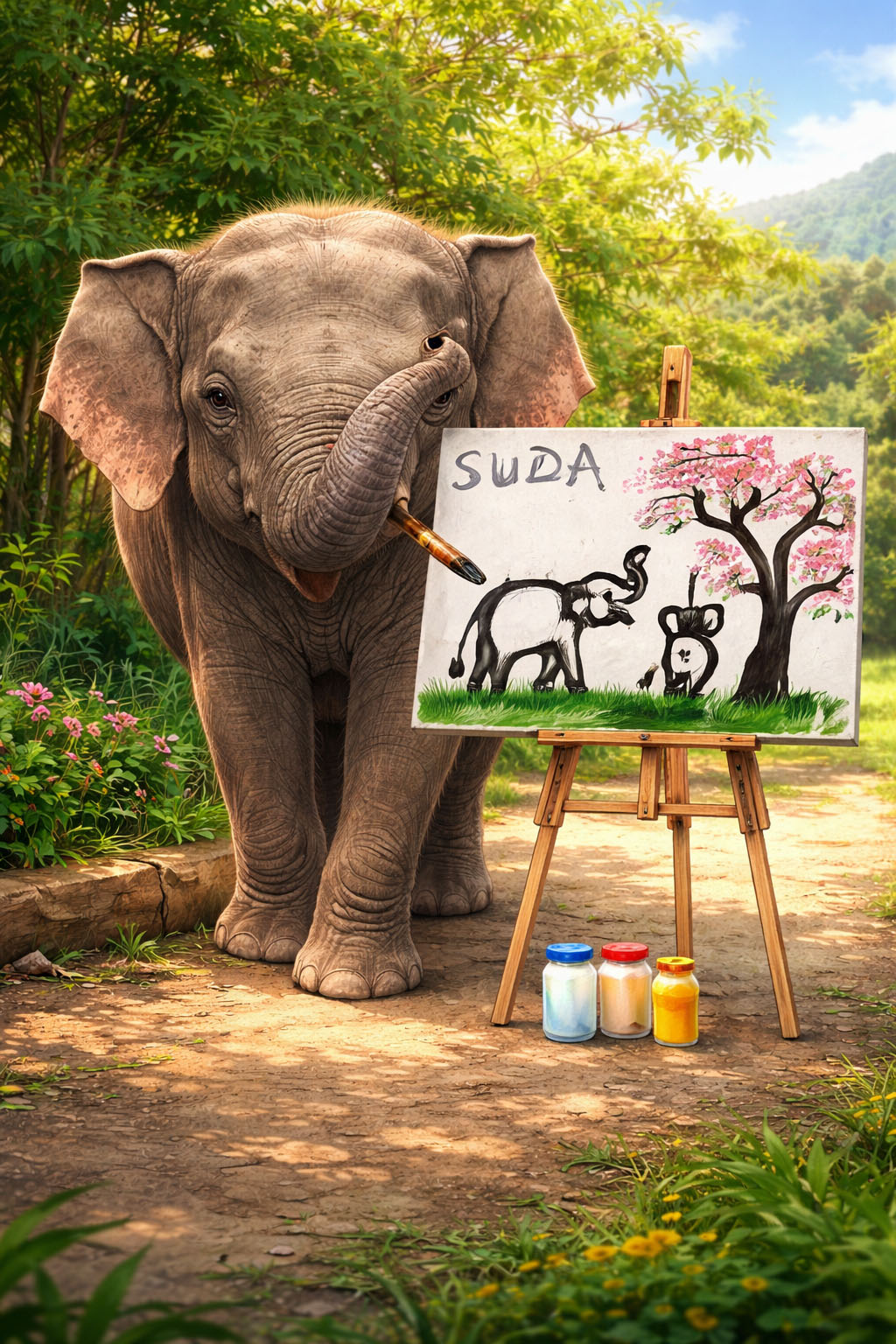 Create digital art with Suda The Artistic Elephant . No experience needed - just pure creative expression!